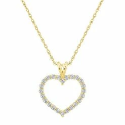 Show her how much she means to you with this diamond-studded Alyson Layne 14k gold open heart pendant necklace.