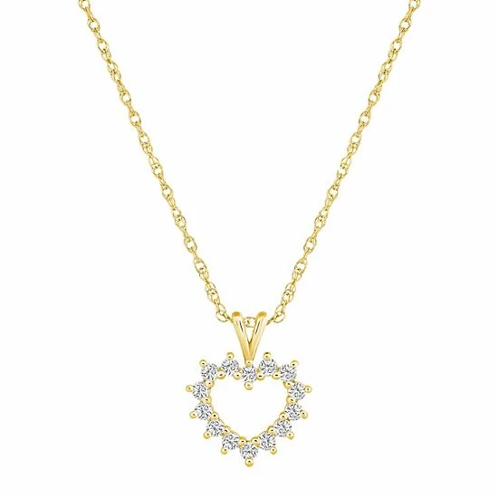 Show her how much she means to you with this diamond-studded Alyson Layne 14k gold open heart pendant necklace.