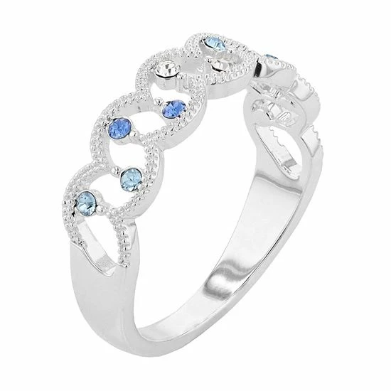 Put an elegant final touch on your look with this Brilliance blue and clear crystal open textured ring.