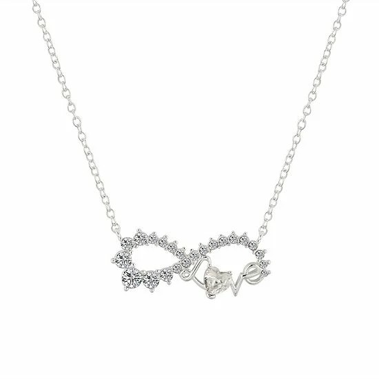 Keep your true love close with this Brilliance Brass “Love” Infinity Pendant Necklace.