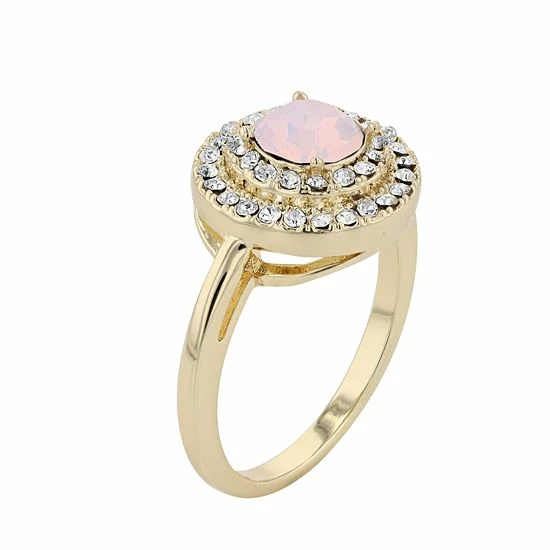 Shimmering with simulated rosewater opal crystals, this Brilliance double halo ring provides a stylish complement to your attire.