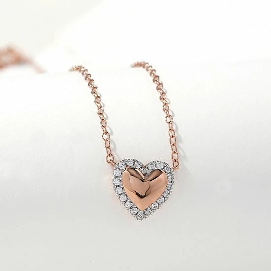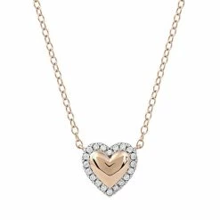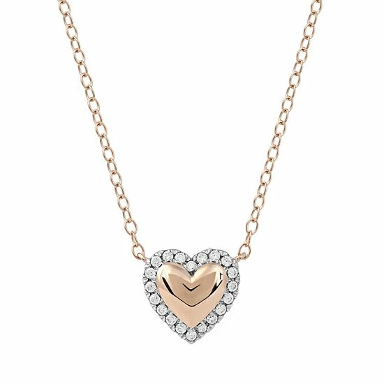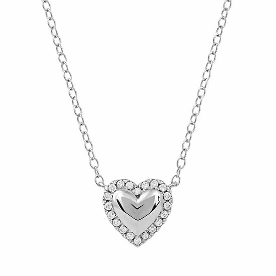 Fashioned in sterling silver, this heart-shaped DeCouer design showcases a polished-finished center surrounded in a diamond-lined border.