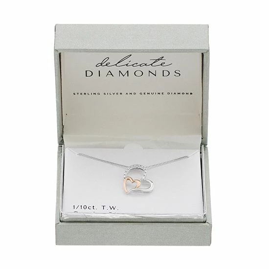 Featuring a charming, double-heart design accented with eye-catching diamonds, this Delicate Diamonds pendant sparkles from every angle.
