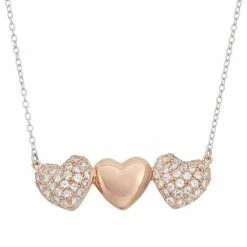 Featuring a triple-heart design with lab-created white sapphire stones, this timeless necklace makes an enchanting gift.