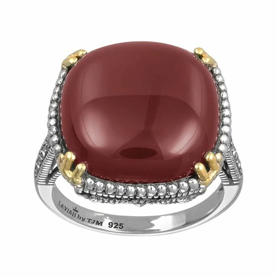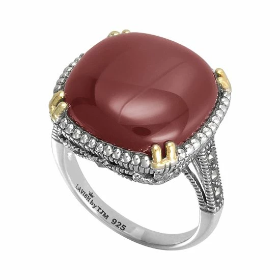Accented by 14k gold-plated details, this agate ring is a bold beauty.