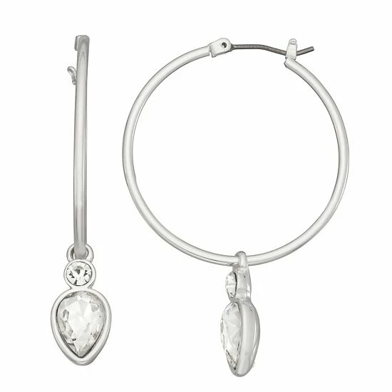 The added drop simulated crystals on these Nine West Silver Tone Click It Hoop Earrings make them stand out.