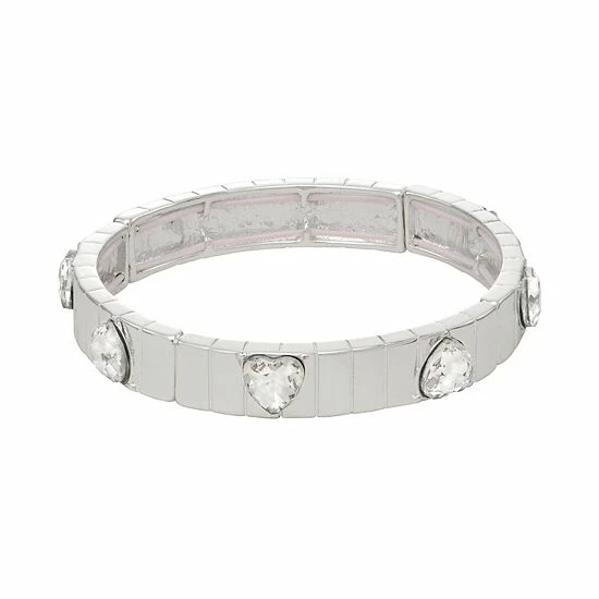Pull on the charm with this Nine West Silver Tone Simulated Crystal Heart Stretch Bracelet.