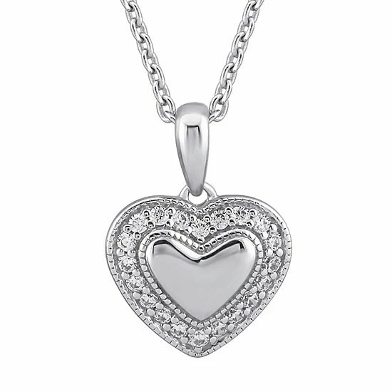 Add a sweet touch of vintage-inspired charm to your jewelry collection with this cubic zirconia-studded OLIVIA AND HARPER sterling silver heart pendant necklace.