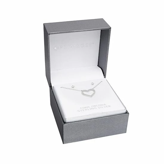 This luminous sterling silver necklace and earring set is adorned with beautiful cubic zirconia stones for a sparkling effect.