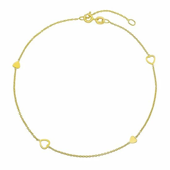 Add a touch of sweetness to your jewelry collection with this 10k gold Taylor Grace anklet, adorned with absolutely darling open heart stations.