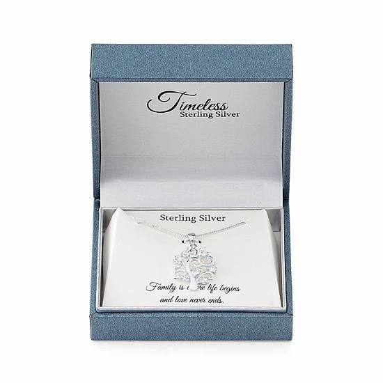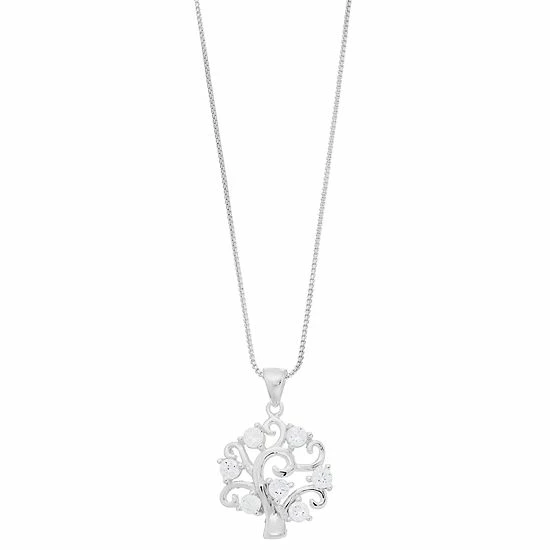 Branch out and enjoy a stylish new look with this Timeless Sterling Silver cubic zirconia tree pendant necklace.