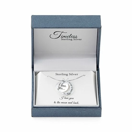 Adorned with “I love you⦔ and “to the moon & back” inscriptions, this moon pendant necklace displays your unending love. Comes in a gift box.