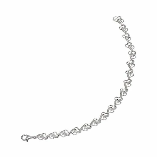 With an intertwined heart motif lined with round-cut diamond accents, this sterling silver bracelet accentuates your outfit with feminine charm.