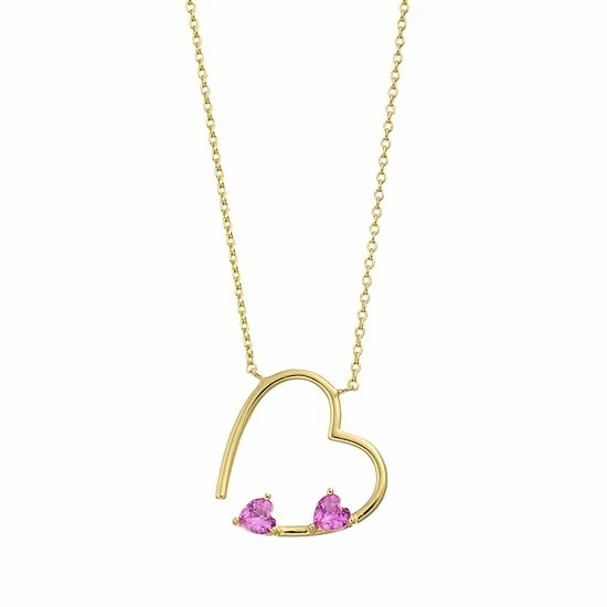 Accented with a pair of heart-shaped pink cubic zirconia gemstones, this open heart pendant necklace completes your look in a charming way.