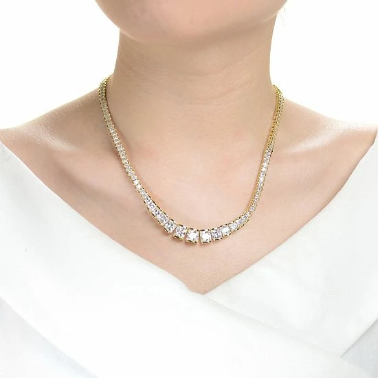 This stunning 14k gold over sterling silver tennis necklace is a must-add to your fine jewelry collection.