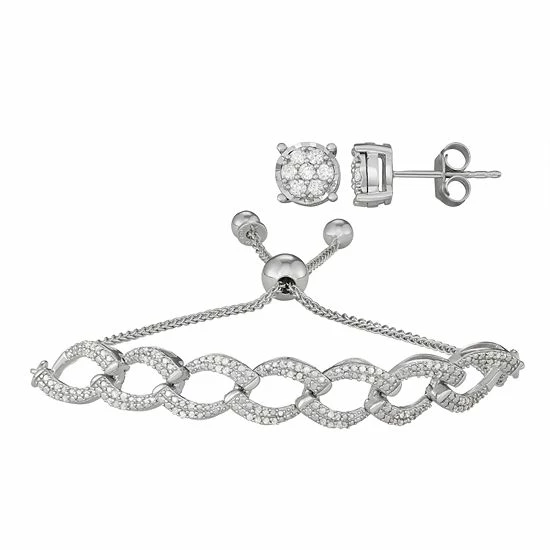 You’ll love the contemporary style of this sterling silver adjustable bracelet and stud earring set.
