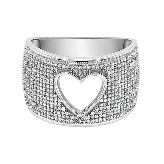 Make a statement with this diamond-studded sterling silver heart cutout ring.