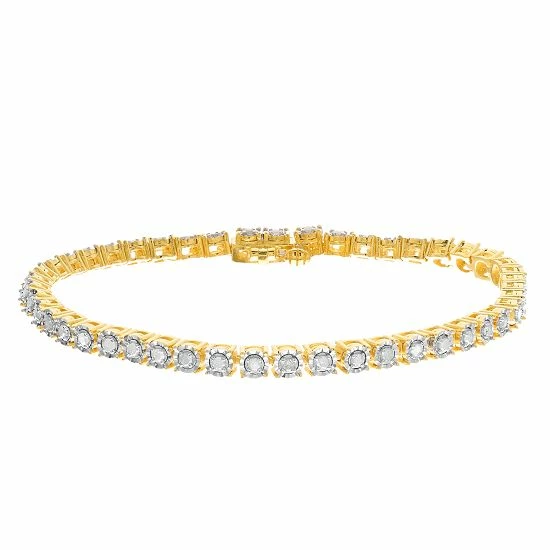 Adorned with shimmering diamonds, this sterling silver tennis bracelet is a sparkling accessory you’ll love.