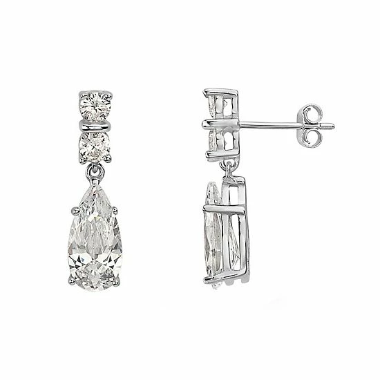 These gorgeous sterling silver cubic zirconia dangle drop earrings are a perfect way to finish your favorite outfits.