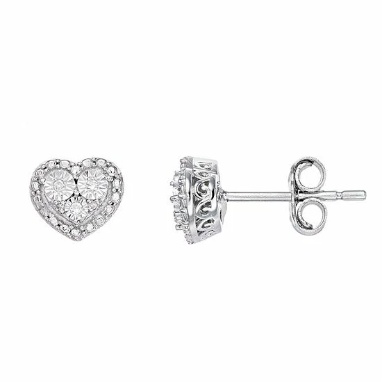 Add a hint of sparkle to any outfit with these sterling silver diamond accent heart stud earrings.