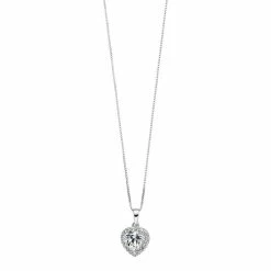 Dazzling with a lab-created white sapphire center stone and a single diamond accent, this sterling silver heart pendant exudes feminine beauty.