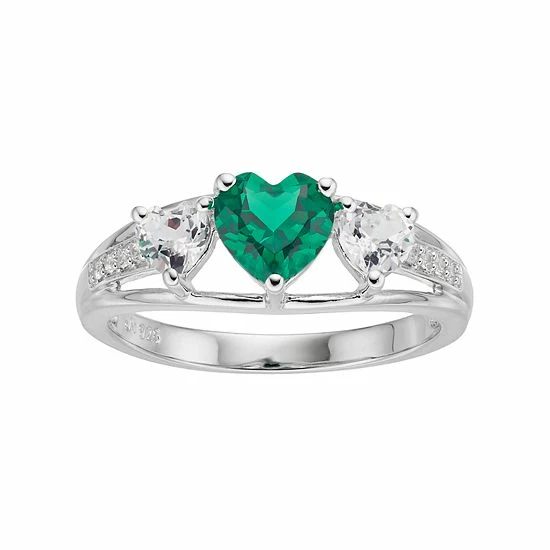 Dazzling with a simulated emerald center stone and lab-created white sapphire accents, this sterling silver ring abounds with feminine beauty.