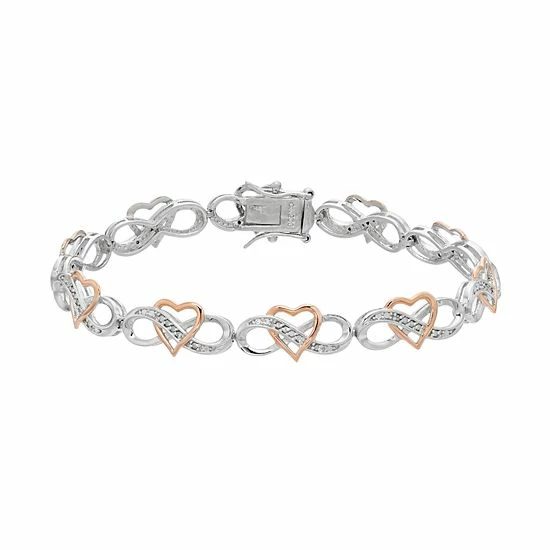 Featuring an intertwined heart and infinity motif adorned with diamond accents, this two-tone bracelet provides unending beauty.