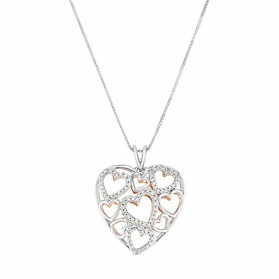 With its 14k rose gold plated and polished sterling silver construction and sparkling diamond-studded open hearts, this stunning pendant necklace is the perfect way to show her how much you care.