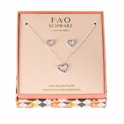 Outlet π FAO Schwarz Multicolor Cubic Zirconia Heart Pendant Necklace & Stud Earring Set π₯°